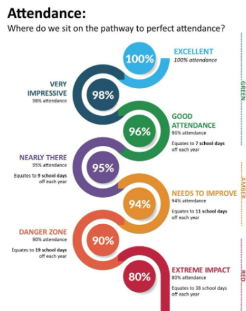 Our school has a target to achieve at least 97% attendance over the course of the year...help us to achieve our target by coming to school every day you possibly can!
