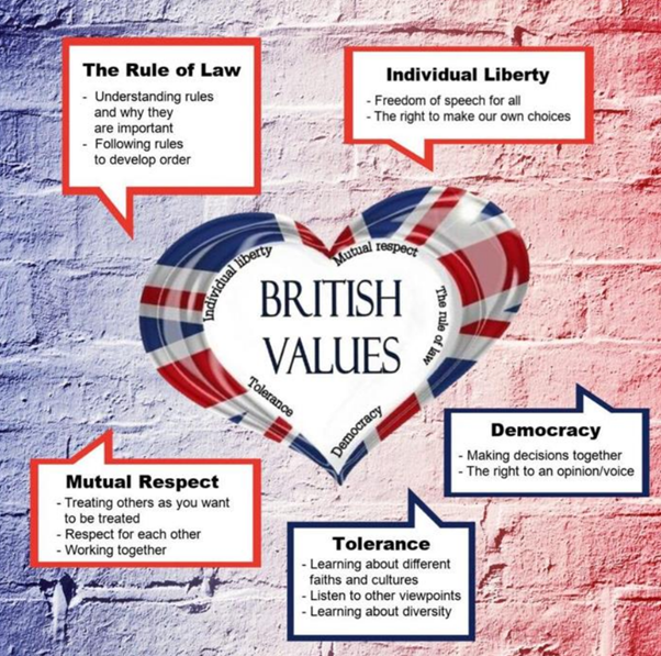 Spirituality is developed through British Values by encouraging pupils to act with respect, integrity and kindness towards others.