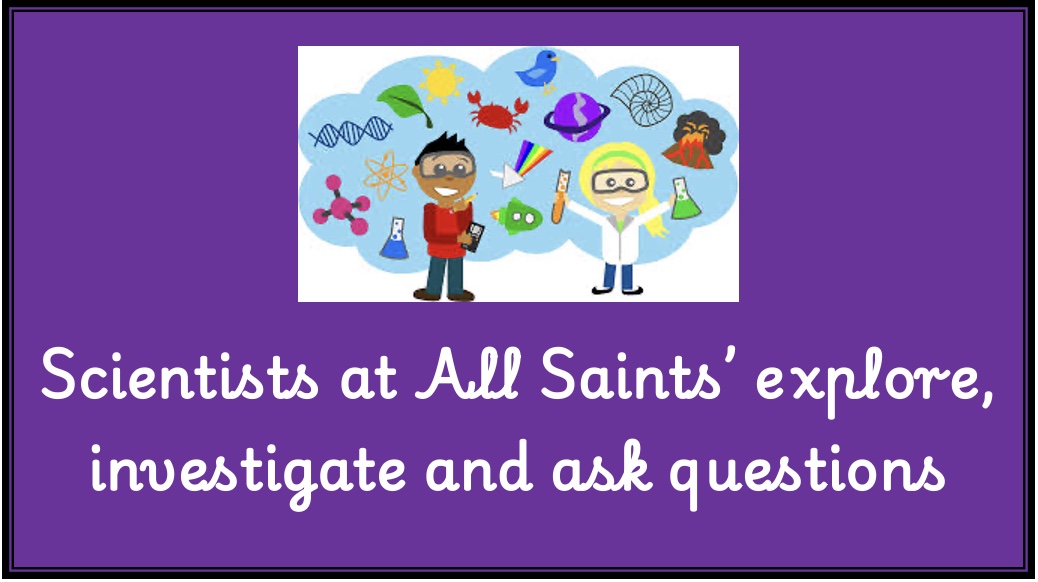 At All Saints' we love science and see science as an important area of the curriculum. As such, time is dedicated to science each and every week. Each year we celebrate British Science Week and engage with the Great Science Share for Schools, during which our children are engaged in a range of wow! science activities, investigations across the range of enquiry types and planning and carrying out investigations, including recapping prior learning from previous years. Science Week and Great Science Share for Schools end with a whole school and community science fair for all to attend and enjoy.