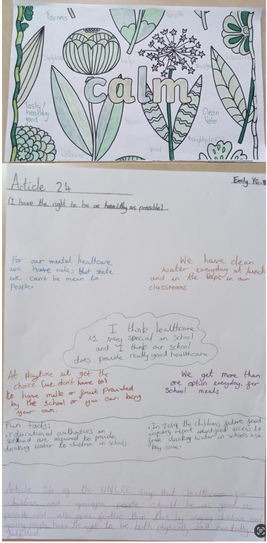 The children were then introduced to Article 24 of the United Nations Convention on the Rights of the Child (UNCRC). This article states that every child has the right to the best possible healthcare. It highlights the responsibility of governments to provide: