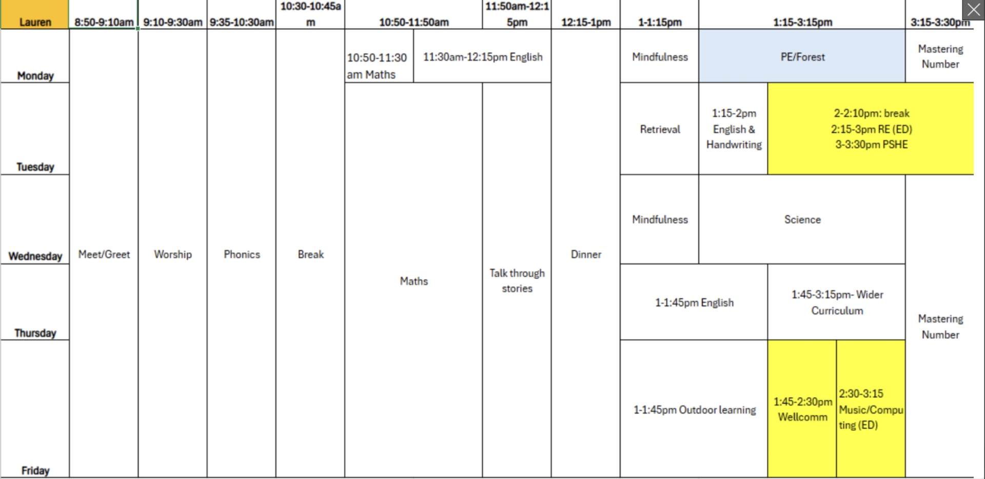 Below is a copy of Willow class timetable.