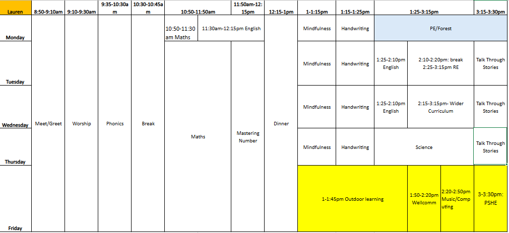 Timetable - Reception